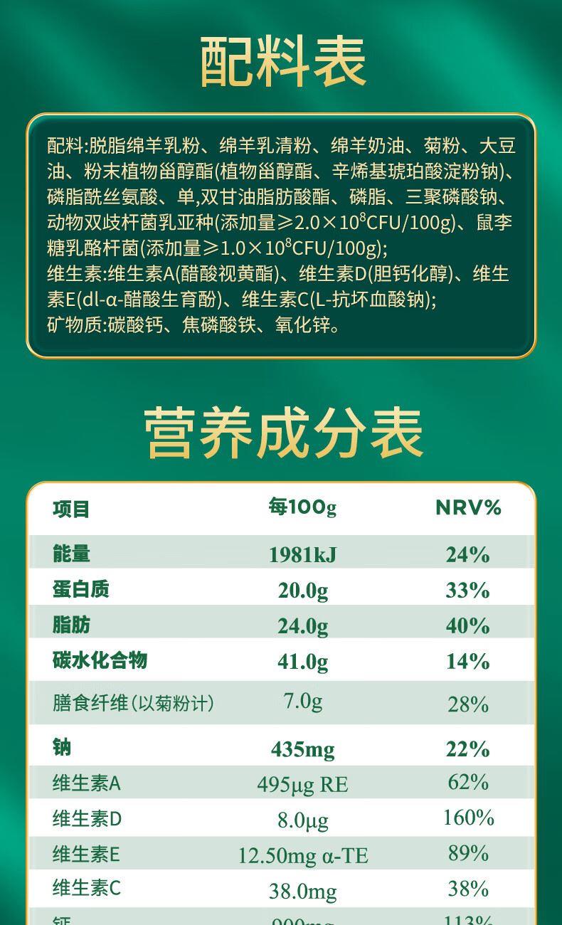 属于肠胃健康定制型羊奶粉 1、每罐含100亿+活性益生菌,保持活性到肠胃,让肠胃活力满满 2、独特的绵羊奶小分子,脂肪球比山羊奶和牛奶更小更容易吸收 3、绵羊奶的口感柔顺,没有羊膻味,香浓美味,适合男女老少