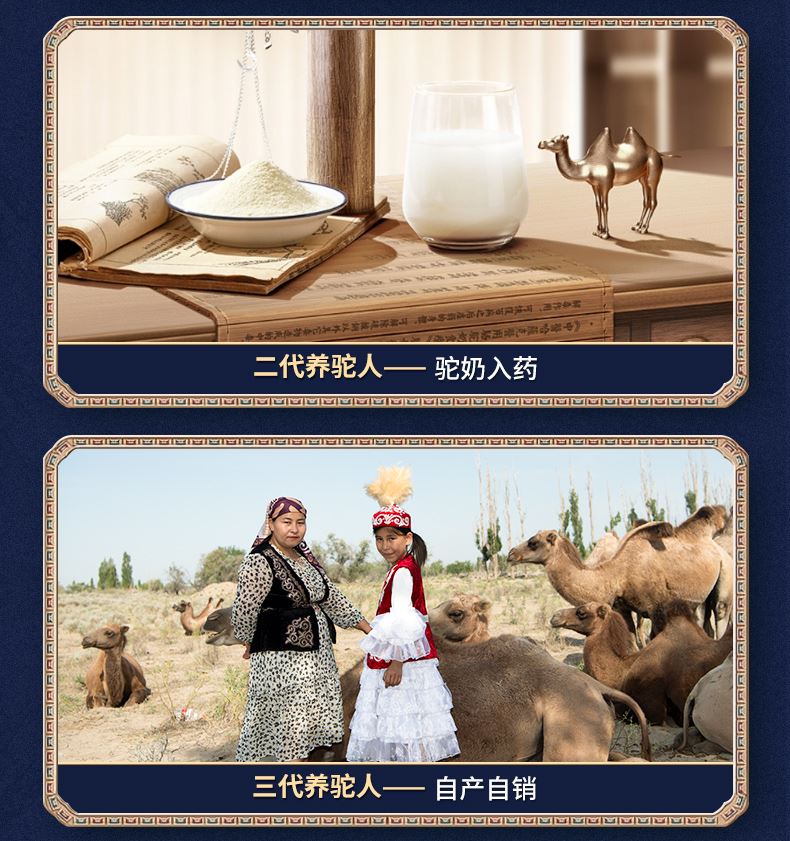 1、来自新疆伊犁,兵团八大牧场之一,专属奶源地,天然纯净无污 染,优选双峰骆驼,奶质更优,产奶更丰富 2、含3倍高钙,天然高蛋白,营养更全面 3、额外添加益生菌,更易吸收,消化 4、半自动机械挤奶;全自动生产成罐,保留驼奶营养;进口冷冻干燥技术