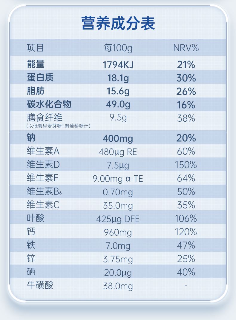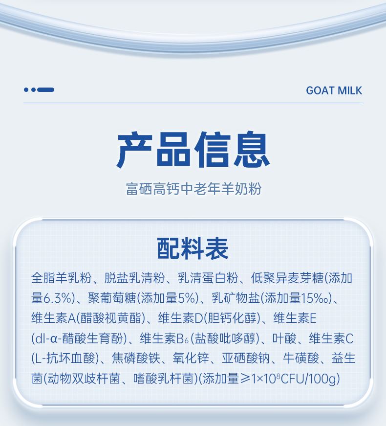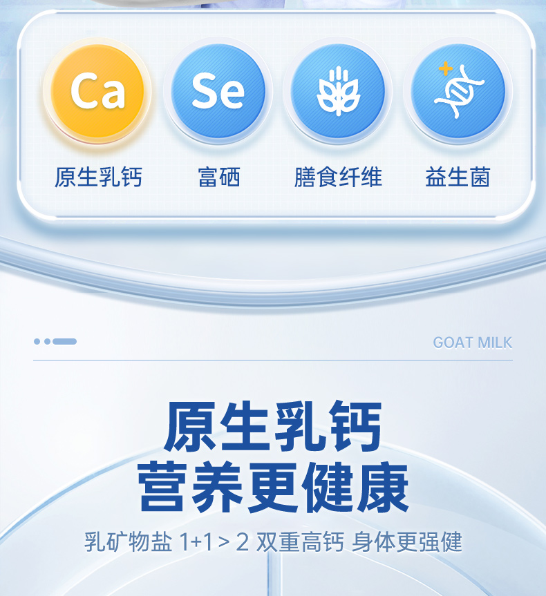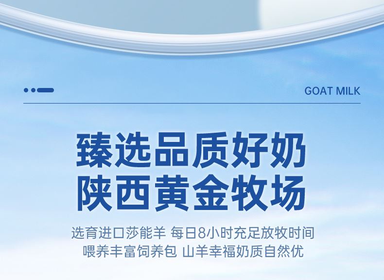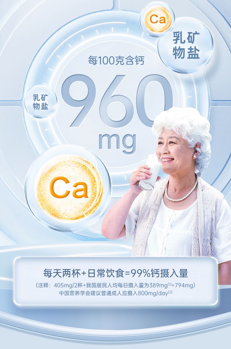1、每100克含钙960mg,原生乳钙更易被吸收 2、对比老款提升25%含量,改善老龄化衰老负担 3、无蔗糖,含丰富膳食纤维,让身体轻负担 3、羊乳自带免疫球蛋白等200多种天然营养物质 4、奶源源于陕西黄金牧场,全程冷链运输均衡锁鲜