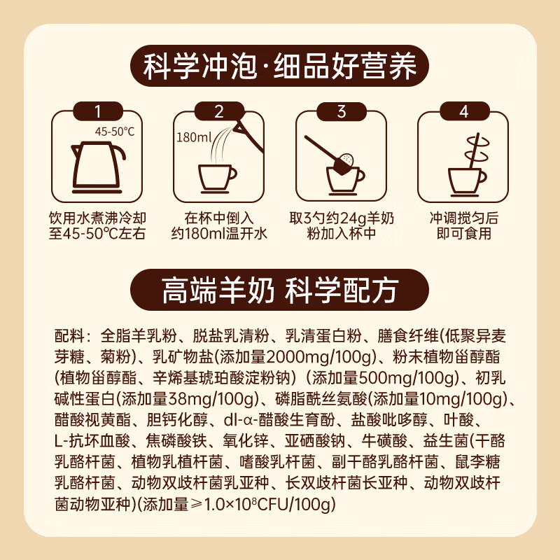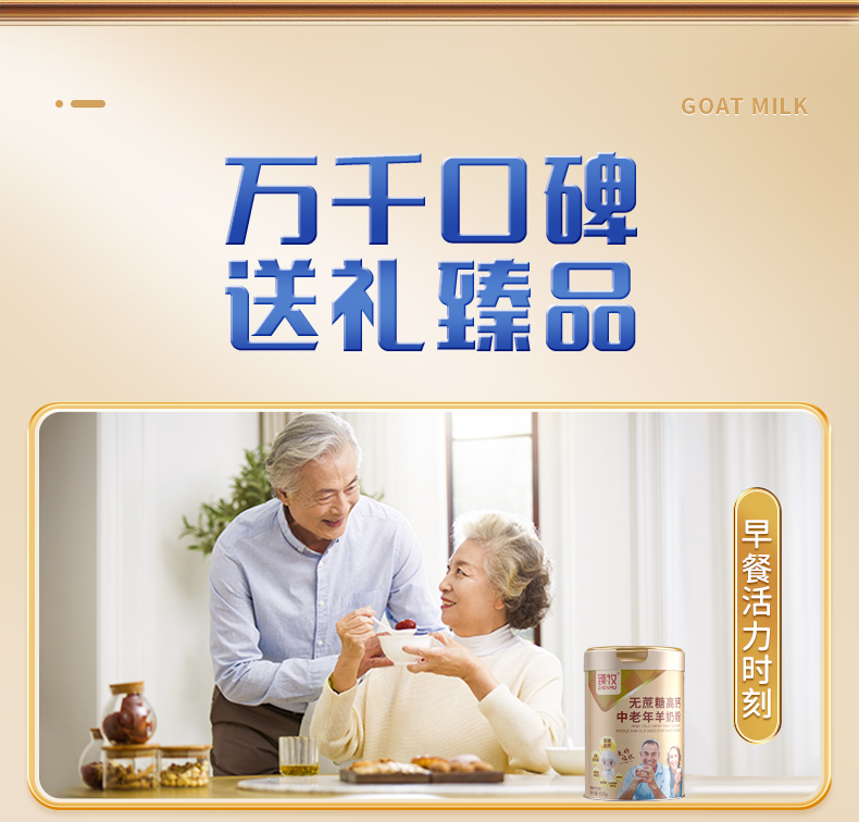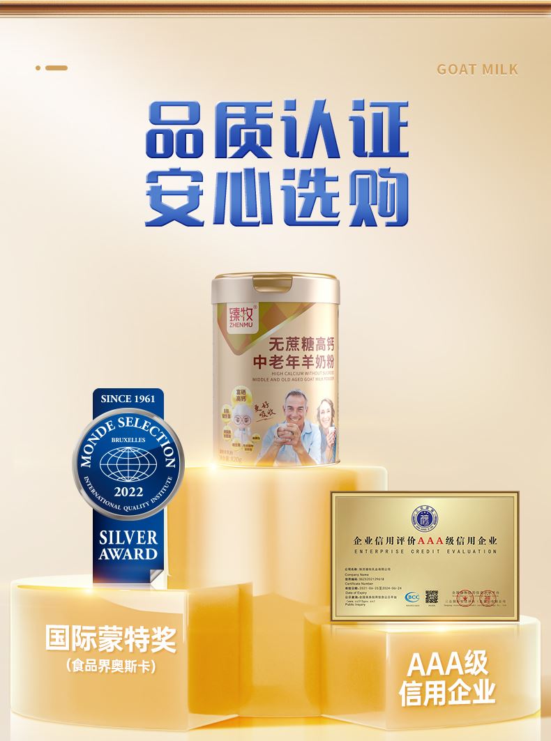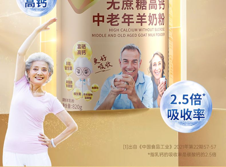 1、中老年羊奶粉榜全网销售额 2、荣获世界品质评鉴大会“国际蒙特奖” 3、超国标4倍高钙含量,每100g含钙1080mg 4、黄金三角高钙法,钙吸收率达2.5倍 5、8联益生菌,促进有益菌生长,助力肠道舒适畅通 6、不易上火,不易过敏,易吸收,乳糖不耐可尝试