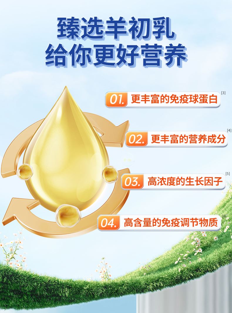 1、珍贵羊初乳年产量仅有0.06% 2、羊初乳免疫蛋白IgG营养补给 3、天然优质高蛋白是纯牛奶的5倍 4、双重益生菌,守护肠道健康